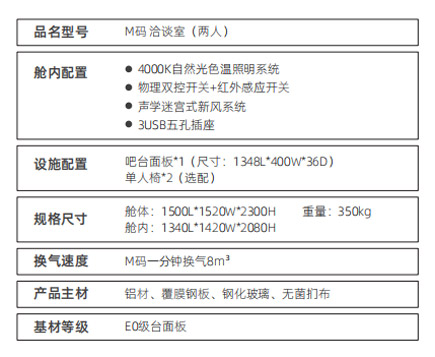 的小房間式空間,具備隔音、吸音、新風、快速安裝等特點,為