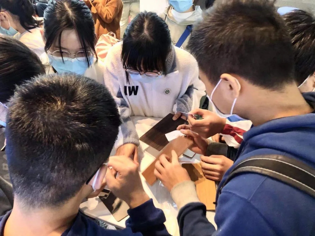現場進行辨別板式材料的小游戲,同學們踴躍參與。