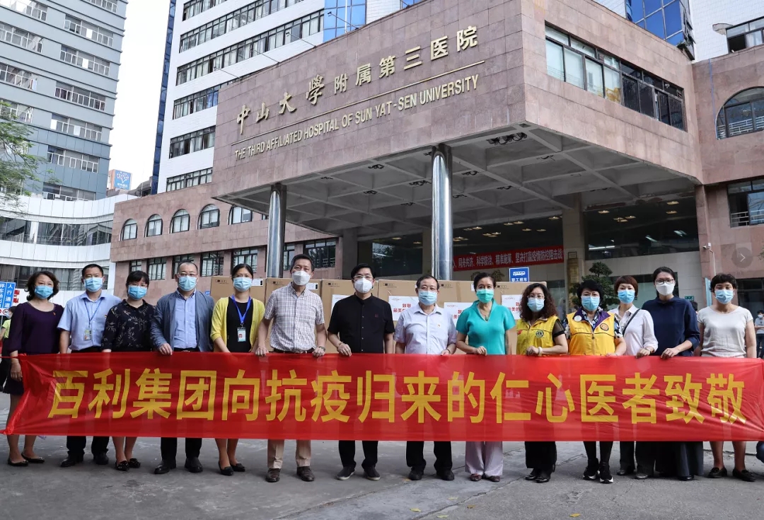 同時,梁敏寧女士帶領(lǐng)百利集團(tuán)積極響應(yīng)從化區(qū)工商聯(lián)(總商會)的號召,捐款6萬元作為抗疫資金,向北京小湯山醫(yī)院無償捐贈40萬元的辦公物資,助力疫情防控。為致敬南方醫(yī)科大學(xué)院、中山醫(yī)科大學(xué)、佛山市第一人民醫(yī)院從一線歸來抗疫英雄們,梁敏寧女士聯(lián)動多家慈善機構(gòu),帶領(lǐng)百利集團(tuán)籌備向英雄個人捐贈活動,祝賀英雄們凱旋歸來。